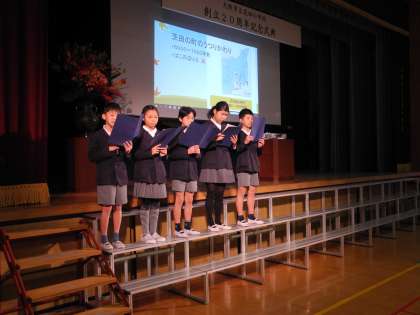 そして、6年生は、国語科で取り組んだプレゼンテーションを発表し