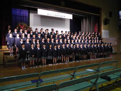 ました。そのあと、5.6年生が「未来につなげ」と「希望のつばさ」