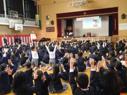 児童会が中心となって、創立20周年を記念して児童集会をしました。