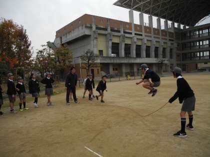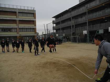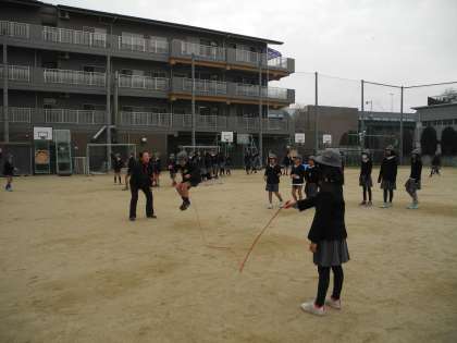 クラスで大なわ(8の字とび)に取り組んでいます。