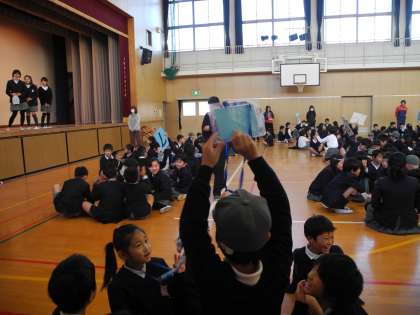 今週の児童集会は、「都道府県ビンゴ」でした。
