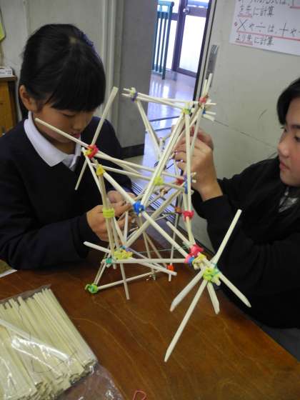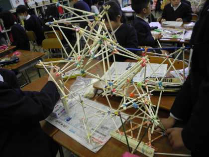 子どもたちは、合体のさせ方に苦戦しながらも、全体のバランスを話し合いながら、協力して作業をしていました。
