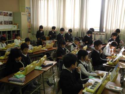 1年生は、音楽の時間に「きらきらぼし」を歌ったり、鍵盤ハーモニカや