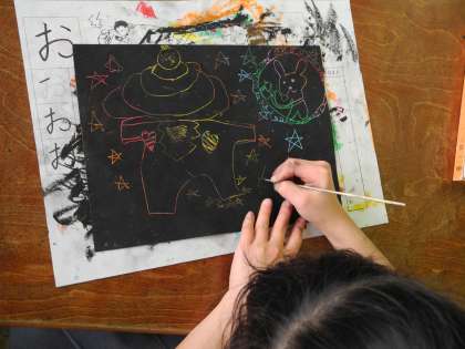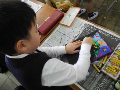 スクラッチをしたら、下の色が出てくるので、子どもたちは楽しんで
