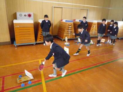 2年生は2学期からおもちゃの作り方を学び、3学期が始まると、おもちゃ作りをしたり、招待状を作成したりして取り組んできました。色やデザインを工夫したり、どうしたら楽しく遊べるのかを考えて作ってきました。前日には、シミュレーションを行い、ルール説明をする人、見本を示す人、傍について遊び方を伝える人など役割分担を決めて練習しました。