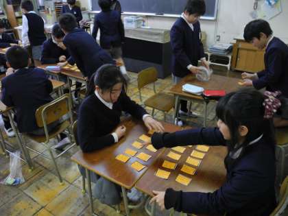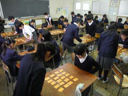 5年生では、13日の百人一首大会に向けて練習をしました。