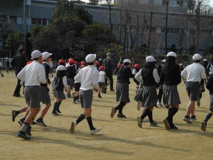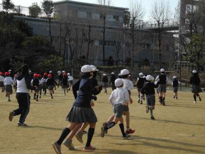 20分休みに全児童が運動場に出て、音楽に合わせて元気よく