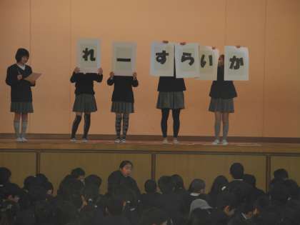 今朝の児童集会は、「ならべかえクイズ」でした。