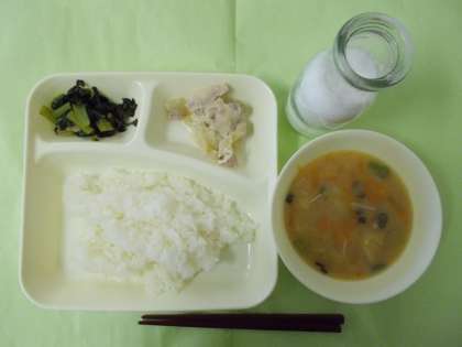 【鶏肉のゆず塩焼き・みそ汁・小松菜の煮びたし・ごはん・牛乳】