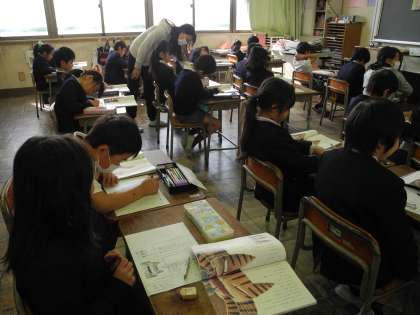 ネコやネズミの気持ちを考えながら、ワークシートに書き込んで