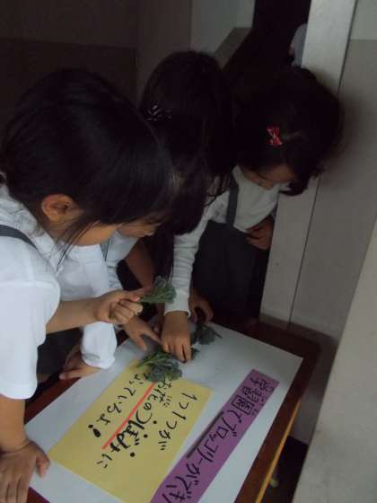 少し切って、給食室を出たところで展示しました。