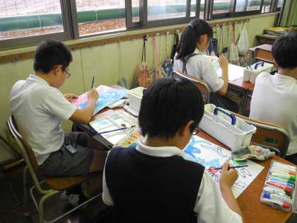 6年2組は、図工「名前でアート」で、工夫して取り組みました。