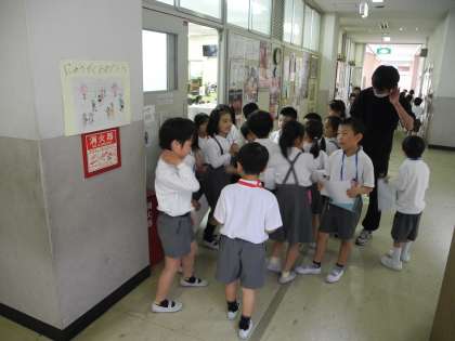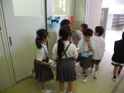 そのあと、学校たんけんをしました。2年生が、1年生に特別教室の