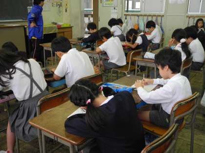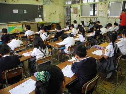 写真は、1年2組と3年1組です。