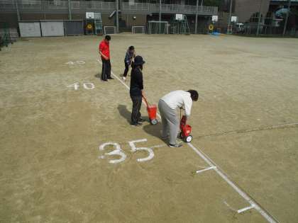 放課後、新体力テストの準備をしました。