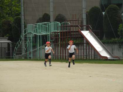 3年生の様子です。ソフトボール投げと50m走の記録をとりました。
