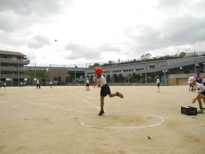 4年生の様子です。ソフトボール投げと50m走の記録をとりました