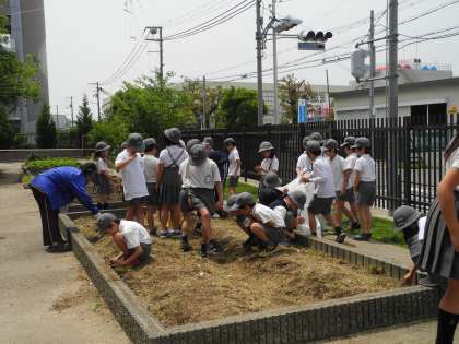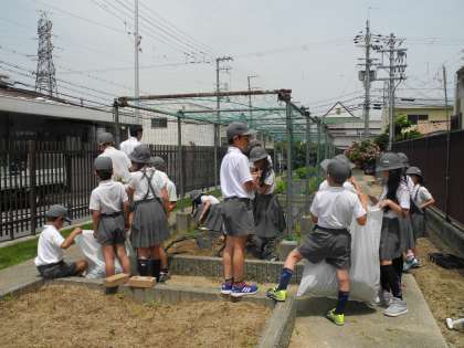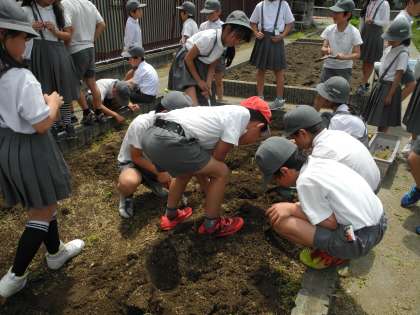 3年生は、マリーゴールドとホウセンカ、4年生は、へちまとひょうたんを学習園に植えました。