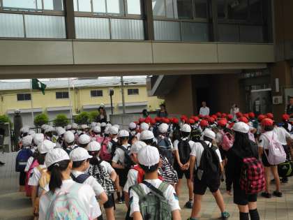 3・4年生は、山田池公園へ向けて全員元気に出発しました。