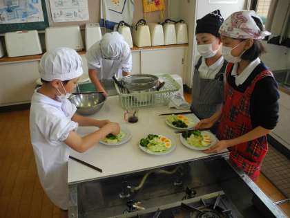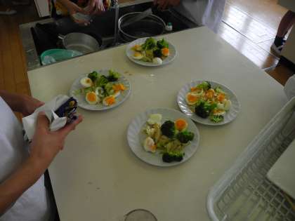 盛り付けをして、ドレッシングをかけて出来上がり!