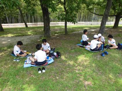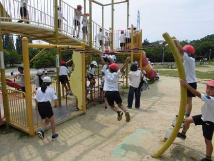 今日は、3・4年生で山田池公園に行きました。ポイントハイクや遊具のある公園で遊びました。お友達と一緒においしいお弁当を食べました。