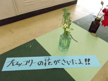 学習園で育てているブロッコリーに、小さくて黄色い花が咲きました。