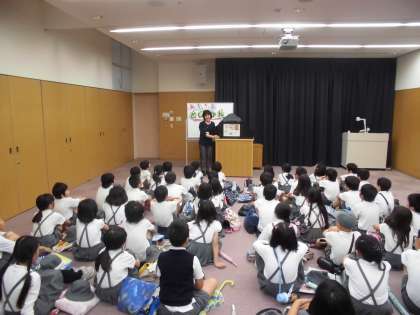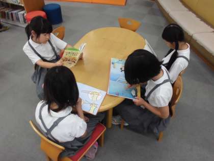 3年生は、社会見学で鶴見図書館に行きました。始めに、紙しばいを見たり、質問をしたりして図書館について勉強しました。次に、図書館の中で本を探して読みたい本を読みました。
