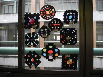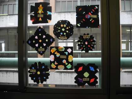 題材名「光のプレゼント」で作った作品を窓に掲示しました。