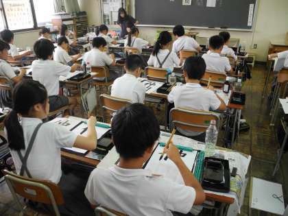 6年生は、毛筆で「仲間」と書きました。