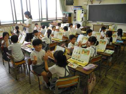 2年生は、音楽で「たぬきのたいこ」を歌いました。