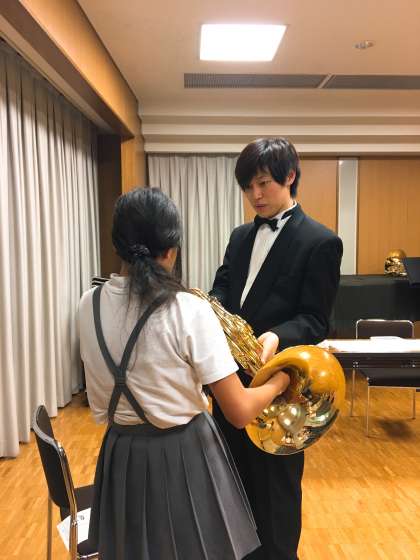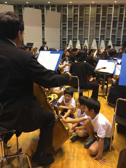 3年生のころに行った音楽鑑賞会とは違い、実際に楽器に触れたり、演奏したりすることができました。初めて触れる楽器に子どもたちは大喜びでした。音を鳴らすことが難しい楽器もたくさんあり、一生懸命に音を鳴らそうとしていました。