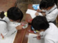 歯茎、歯肉炎について学習しました。デンタルフロスが配られ、使い方を教えてもらいました。