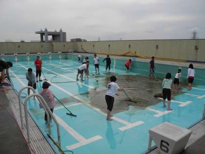 来週から、いよいよプールが始まります。 それに向けて、教職員がプール清掃をしました。