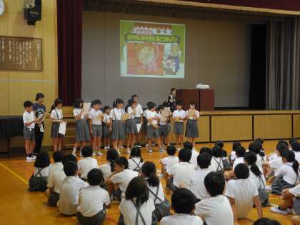 来週は、「早ね 早おき 朝ごはん週間」です。それに合わせて、保健委員会の子どもたちが発表をしました。「早ね 早おき 朝ごはん週間」