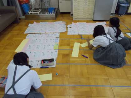 保健室前には、保健委員会と給食委員会の子どもたちや