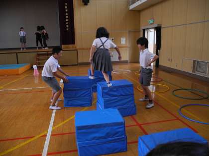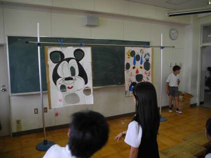 3年以上の各クラスが作ったお店をなかよし班のグループで回りました。
