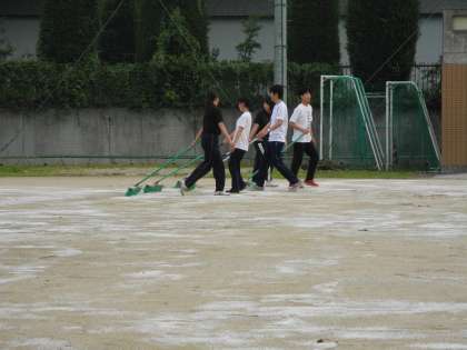 運動会に向けて、にがりをまきました。