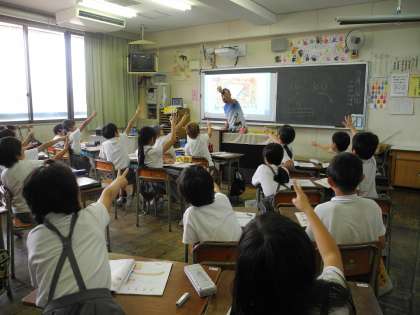 2学期より、全学年がカナダ人のジャン先生に英語を教えていただきます。今日は、3・4・6年生が活動をしました。