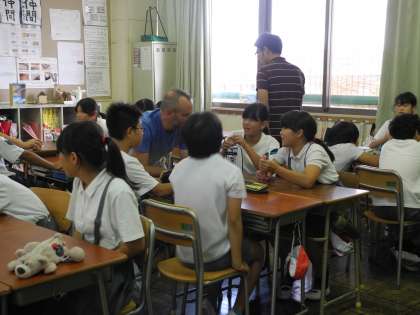 (下)6年生はグループになって、質問をしています。
