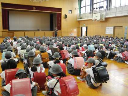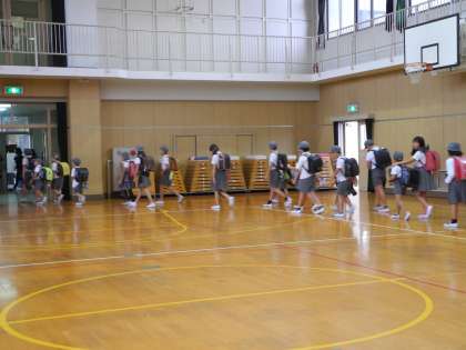 地区別に分かれるときには、班長が1年生を決められた場所まで連れて行きました。それから、地区別で下校しました。