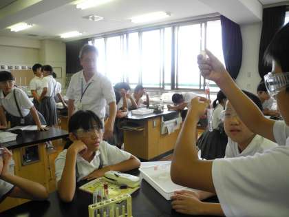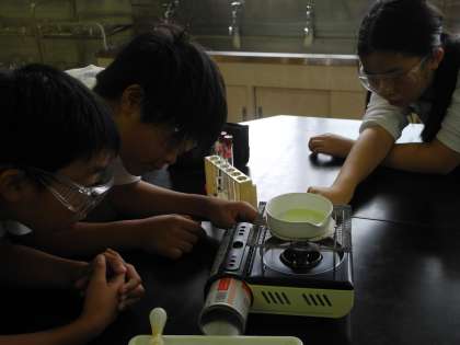 鉄が溶けている塩酸の水溶液を蒸発させて、溶けている物質を取り出す実験をしました。