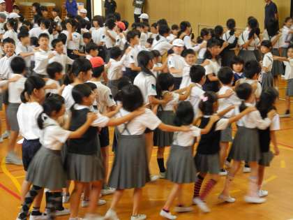 今朝の児童集会は、「ジャンケン列車」をしました。