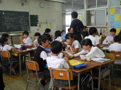 5年生は、社会で自動車工場について、グループで話し合いました。
