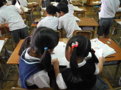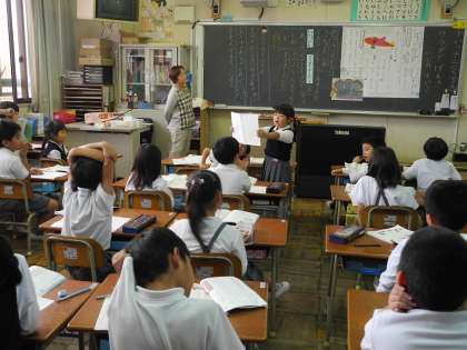 子どもたちは、音読をしたり、文章を読み取ってワークシートに書いたことをペア交流したりして、一人ひとりが活発に活動していました。