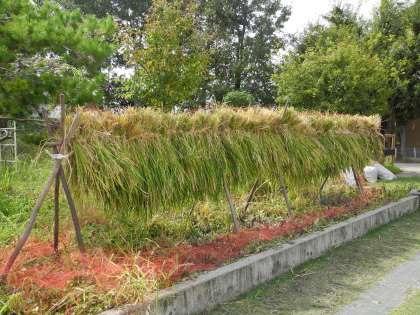 稲刈りをした後、脱穀まで干しておきます。