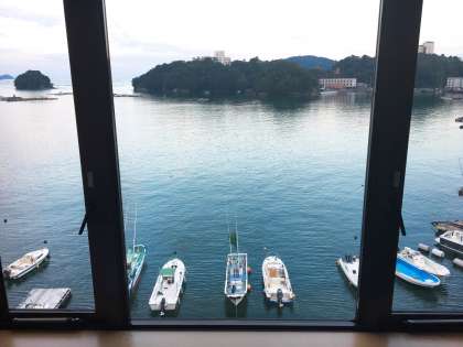 宿に着きました。窓からは海や小さな島が一望でき、とても美しいです。