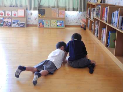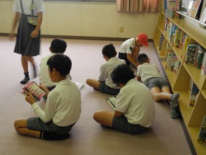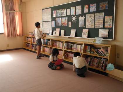 休み時間には、読書スペースで子どもたちが夢中で本を読んでいます。