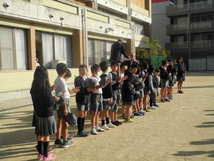 月曜日の児童朝会では、もらった賞をみんなの前で校長先生に表彰してもらいました。
