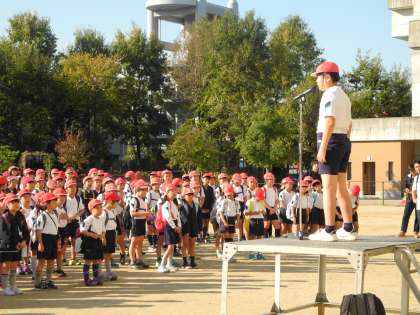 秋晴れの一日、なかよし班で楽しく活動したいです。
