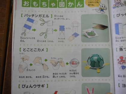 カップ麺のカップや輪ゴム、乾電池を使って「とことこカメ」を作りました。